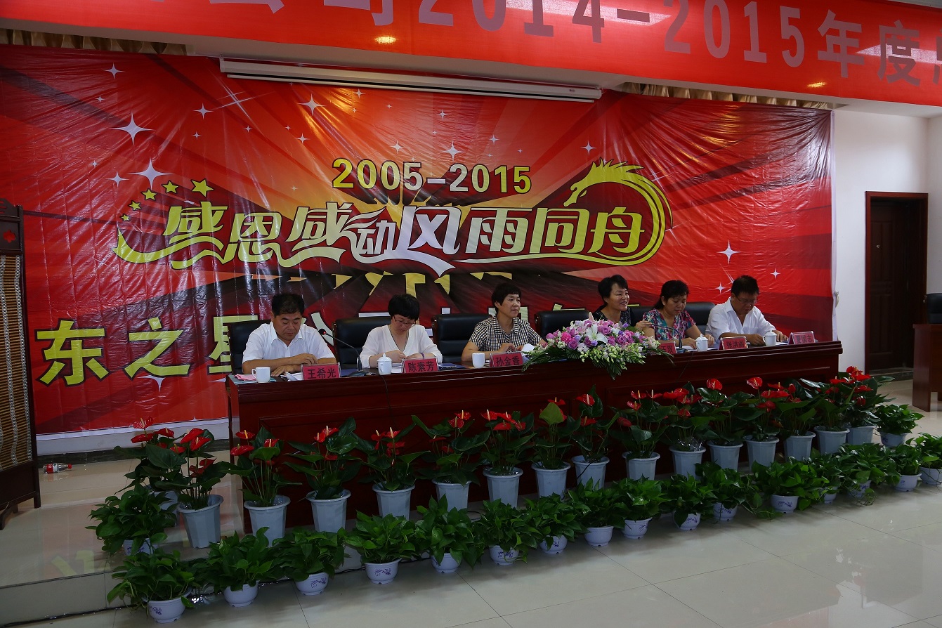最后集團公司董事長孫金香做工作總結(jié)報告,孫總指出,2015年是東之星品牌建立的第十年,這是艱苦奮斗的十年,是努力拼搏的十年,是全體東之星人同舟共濟的十年;十年的風(fēng)雨兼程,鑄就了東之星人開拓創(chuàng)新、銳意進取的工作作風(fēng);十年的執(zhí)著追求,創(chuàng)造了東之星企業(yè)發(fā)展史上一個又一個奇跡。過去的成績令東之星人神采飛揚,未來的希望更讓我們欣然神往。今天,東之星人站在新的起跑線上,讓我們風(fēng)雨同舟,再創(chuàng)輝煌,為實現(xiàn)“百年東之星,世界東之星”的夢想而努力奮斗!
